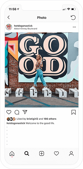 Hot Dog on a Stick, a legendary California brand, doesn’t need any help being cool. The chain, which began on Muscle Beach in 1946, oozes a Cali vibe and counts celebrities among its most loyal customers. Our job is to broadcast that vibe to a larger audience, while deepening the existing love for the brand among current customers.